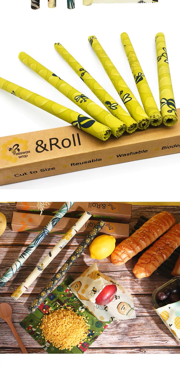 Eco Friendly Biodegradable Reusable Roll of Beeswax Wrap Organic Food Wrap Foldable Multifunction Freshness Preservation