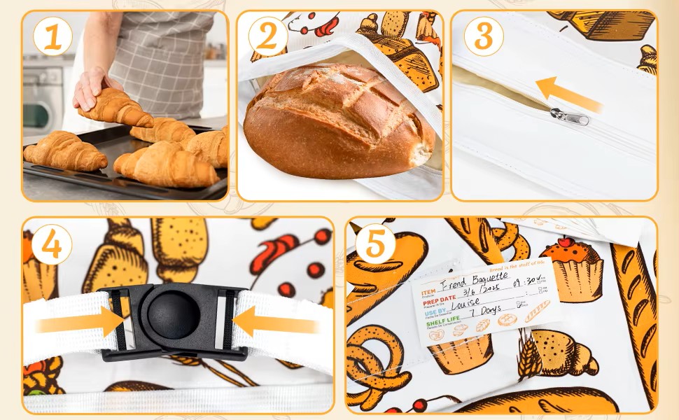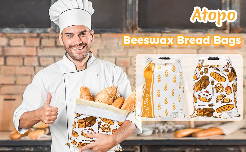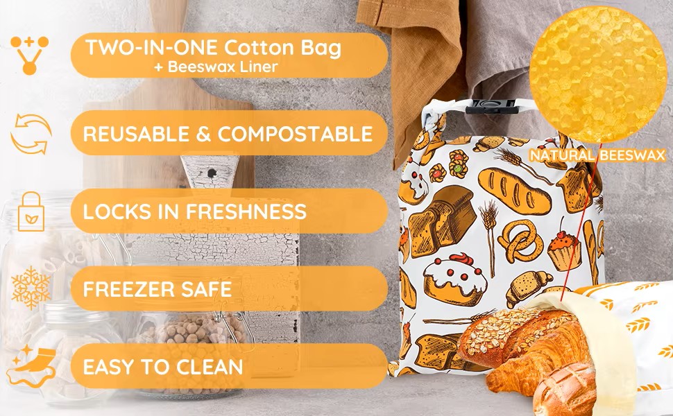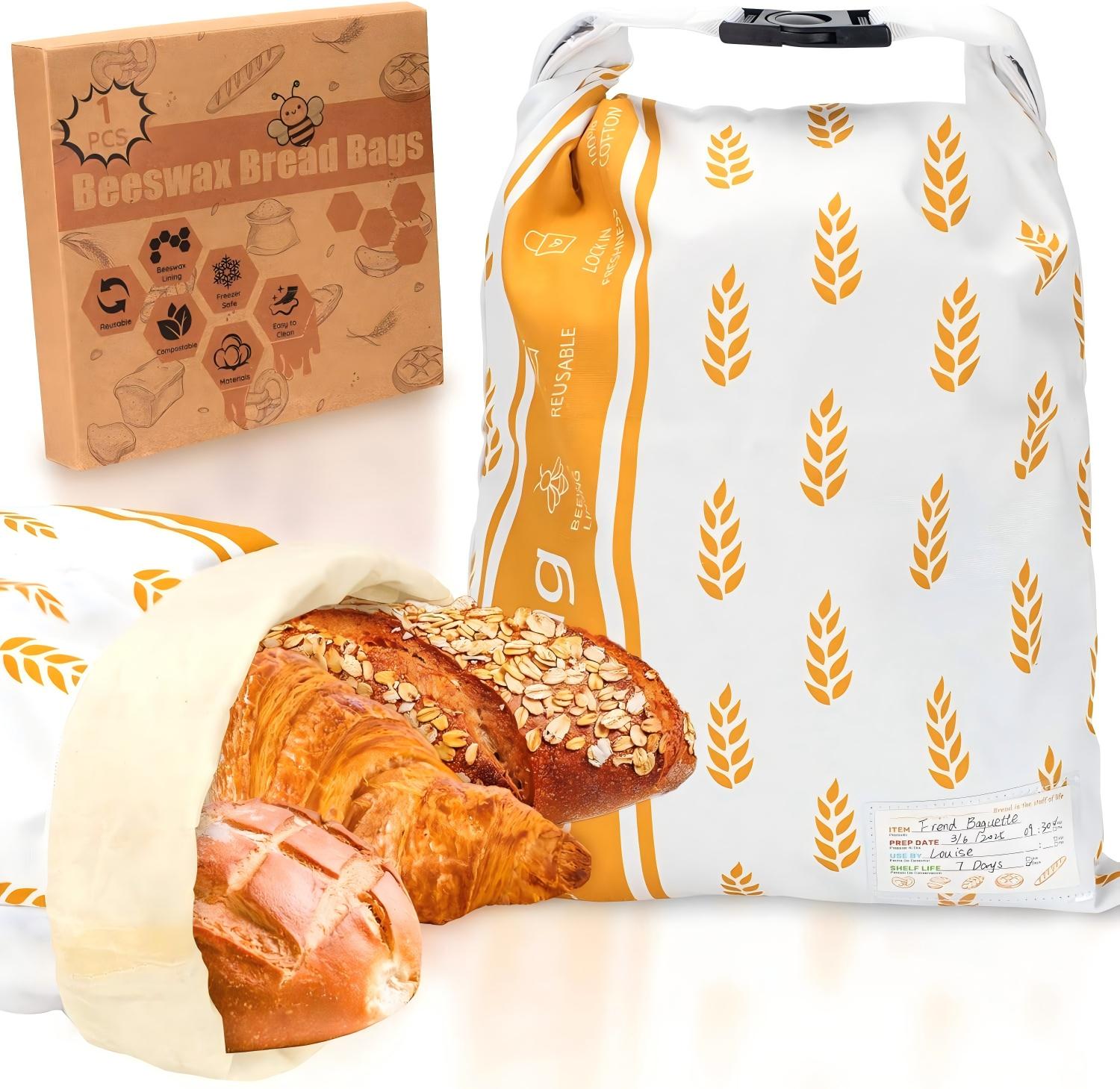 Reusable Beeswax Bread Bag for Homemade Bread & Sourdough Loaf, Fridge-Safe Storage Container with Dual-Zip Freshness Lock
