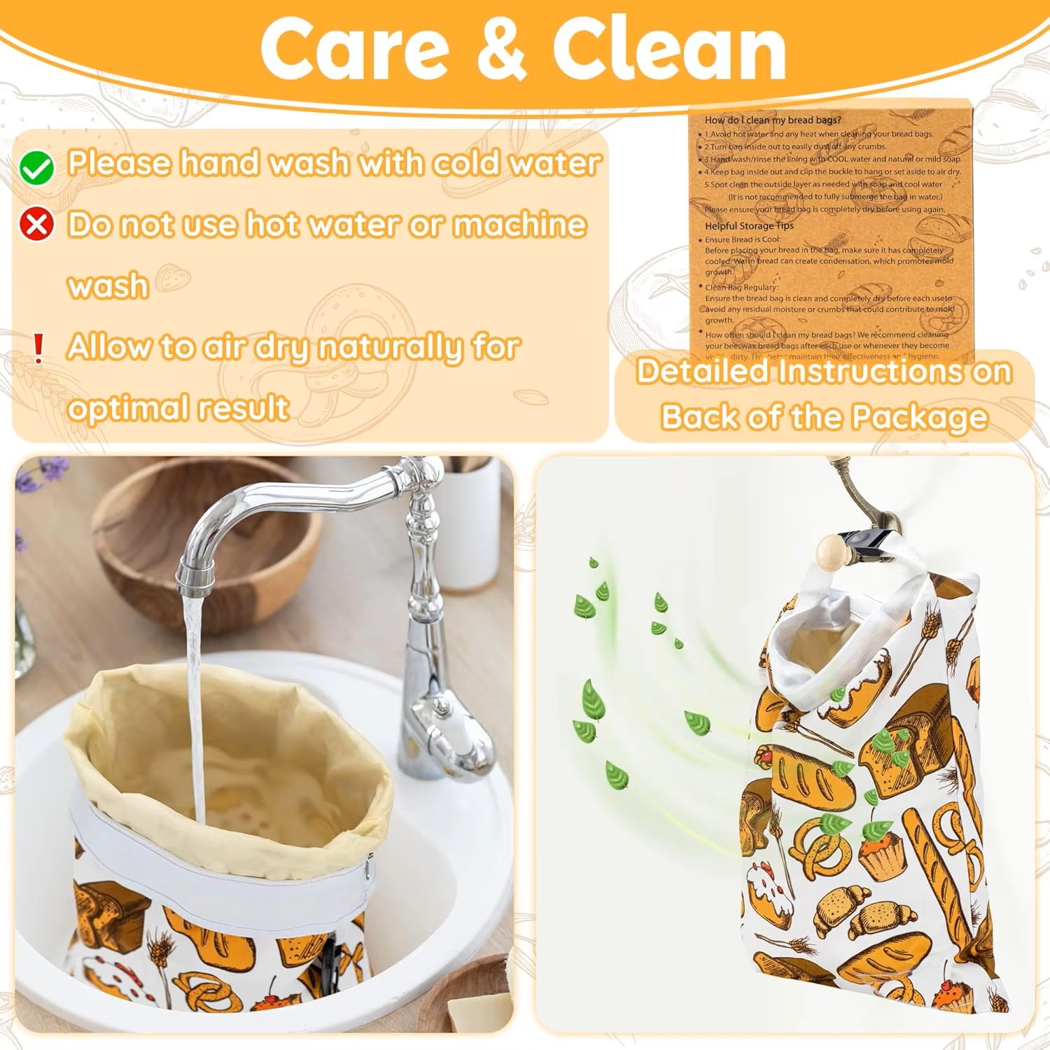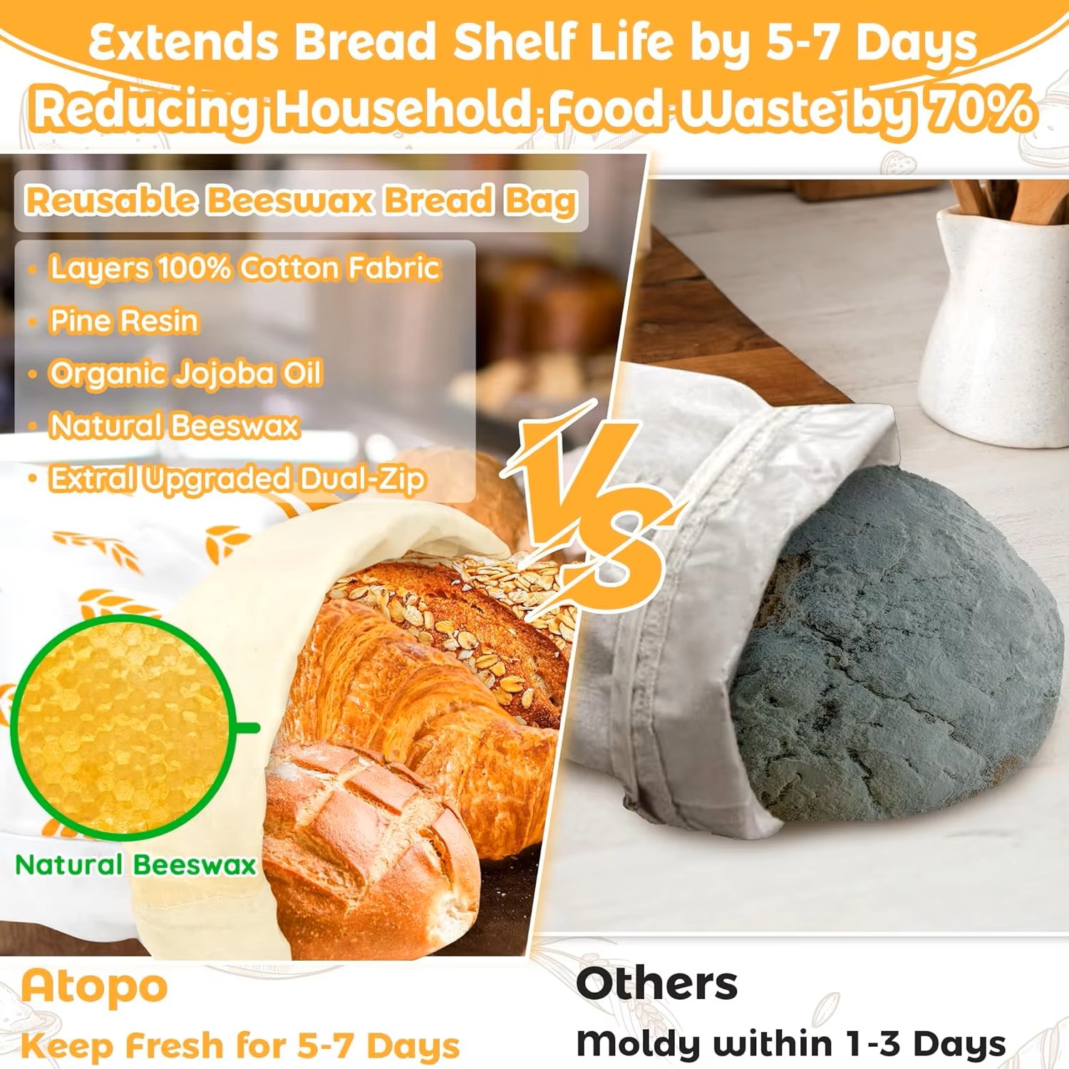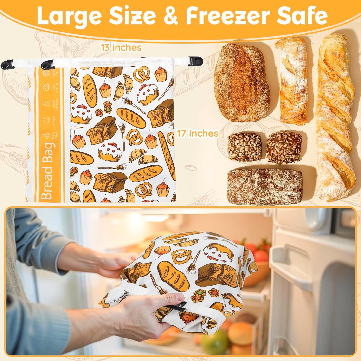 Reusable Beeswax Bread Bag for Homemade Bread & Sourdough Loaf, Fridge-Safe Storage Container with Dual-Zip Freshness Lock