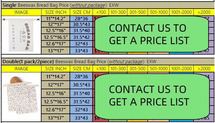 Custom Logo Size Reusable Cotton Beeswax Bread Bags for Sourdough and Homemade Bread Freezer Refrigerator Freshness Keeper